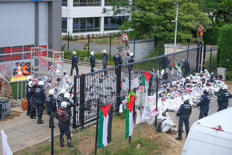 Habillés de combinaisons blanches, le visage dissimulé, quelque 150 activistes ont pénétré tôt dans la matinée dans les hangars de la société tournaisienne. Leur action s’inscrivait dans le cadre de la campagne “Stop Arming Israel”, par laquelle ils réclament le respect de l’embargo militaire visant Israël et l’adoption de sanctions par la Belgique à l’encontre de l’État hébreu.
