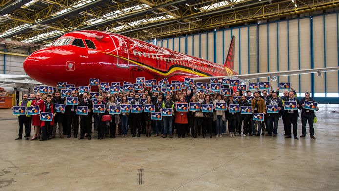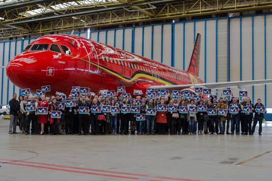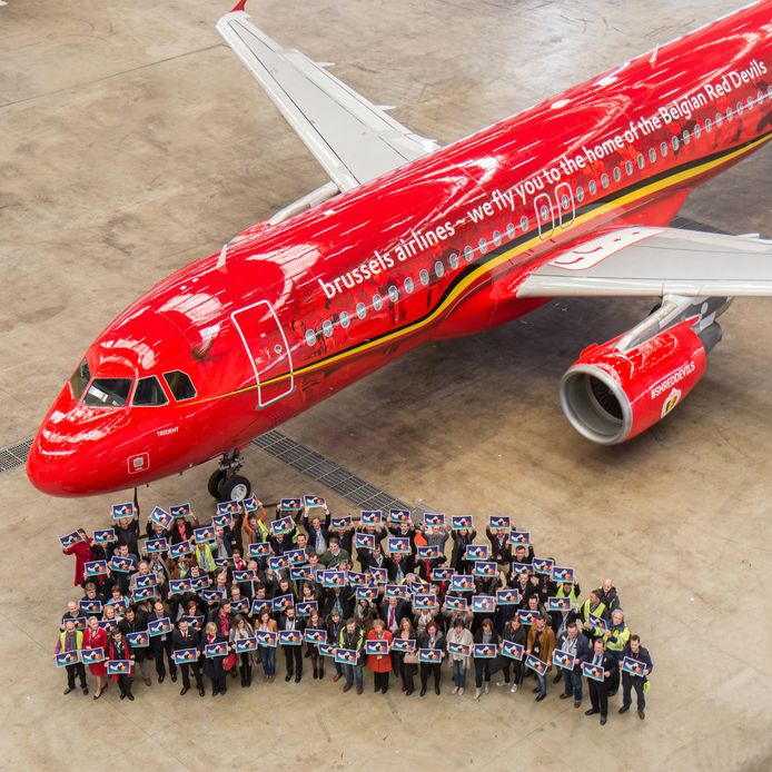 "Notre Airbus, immatriculé OO-SNA, est dédié à notre équipe nationale: les Diables Rouges. Pour tout ce qu'ils ont donné à la nation lors de leur montée vers le sommet du classement, pour tous les matchs enthousiasmants qui les attendent encore", écrit Brussels Airlines sur son site.